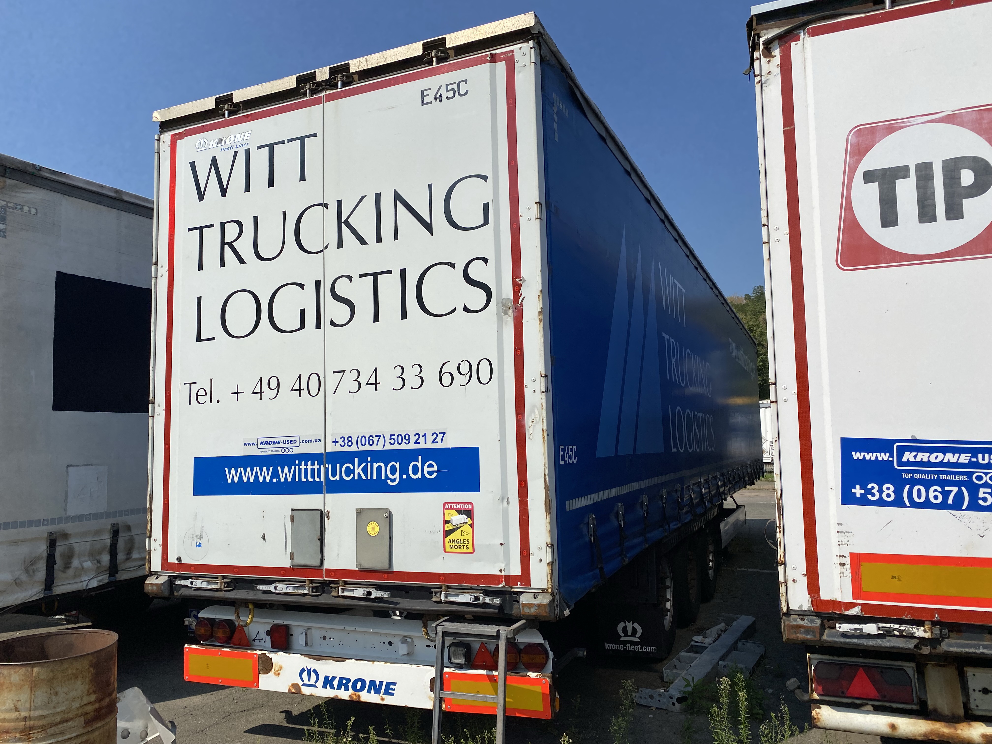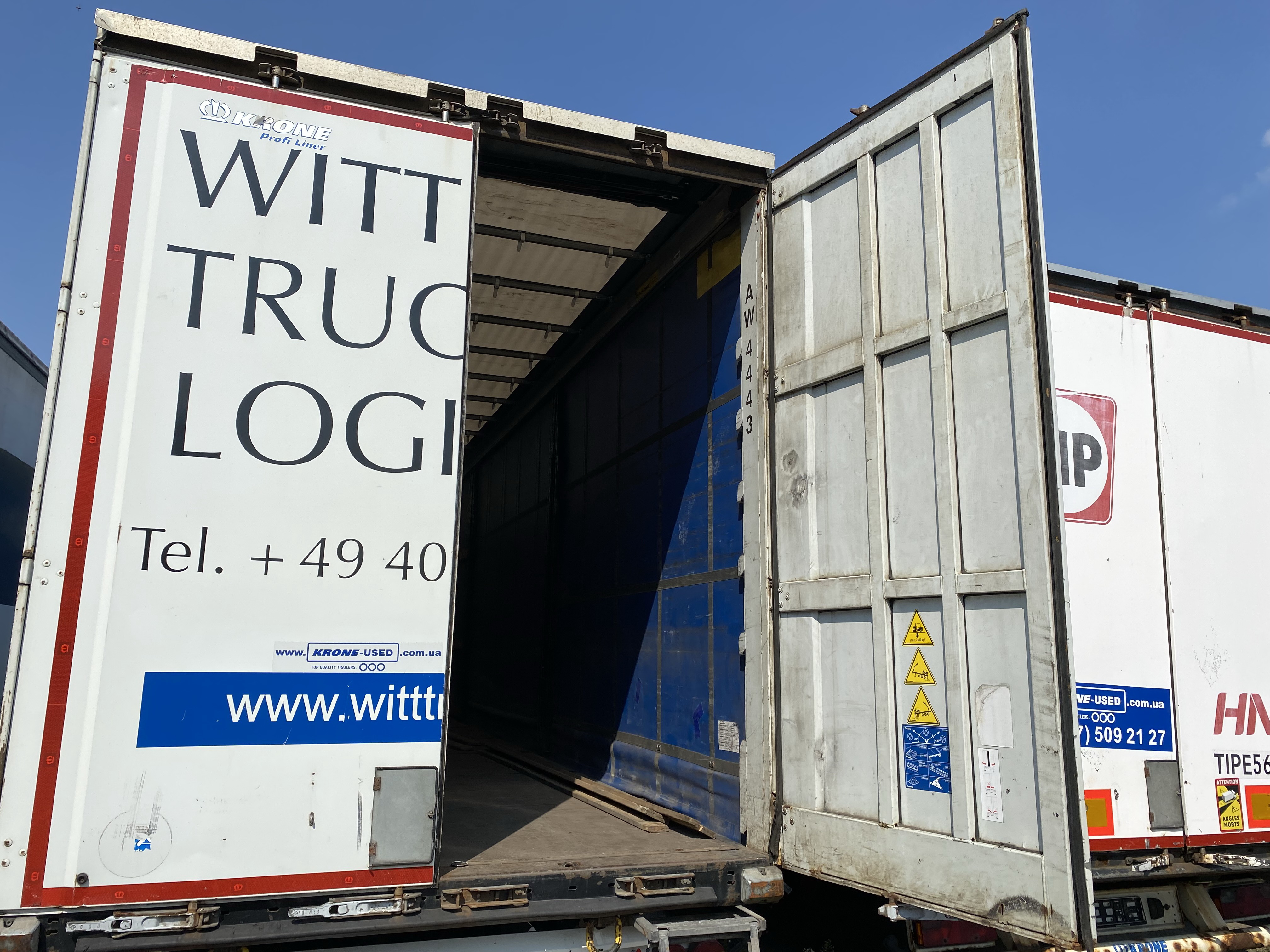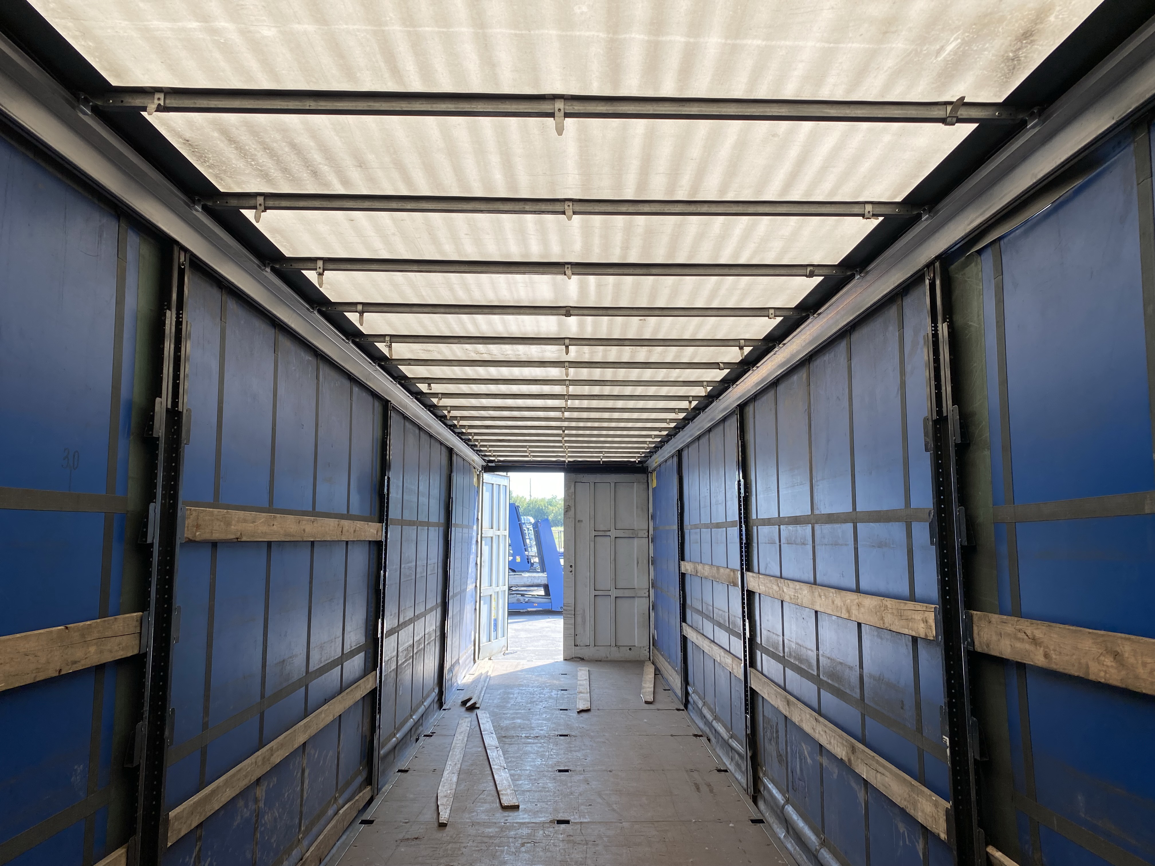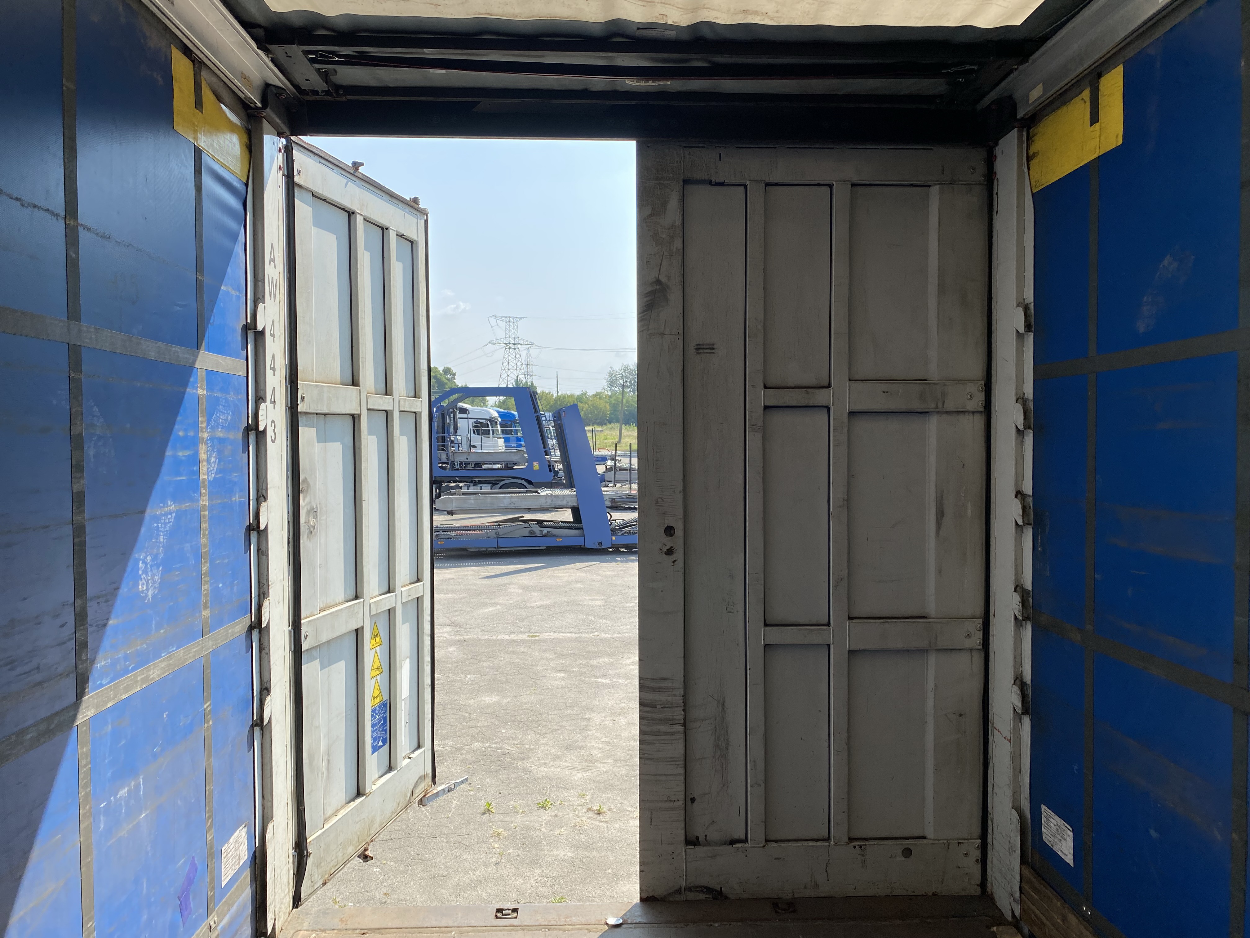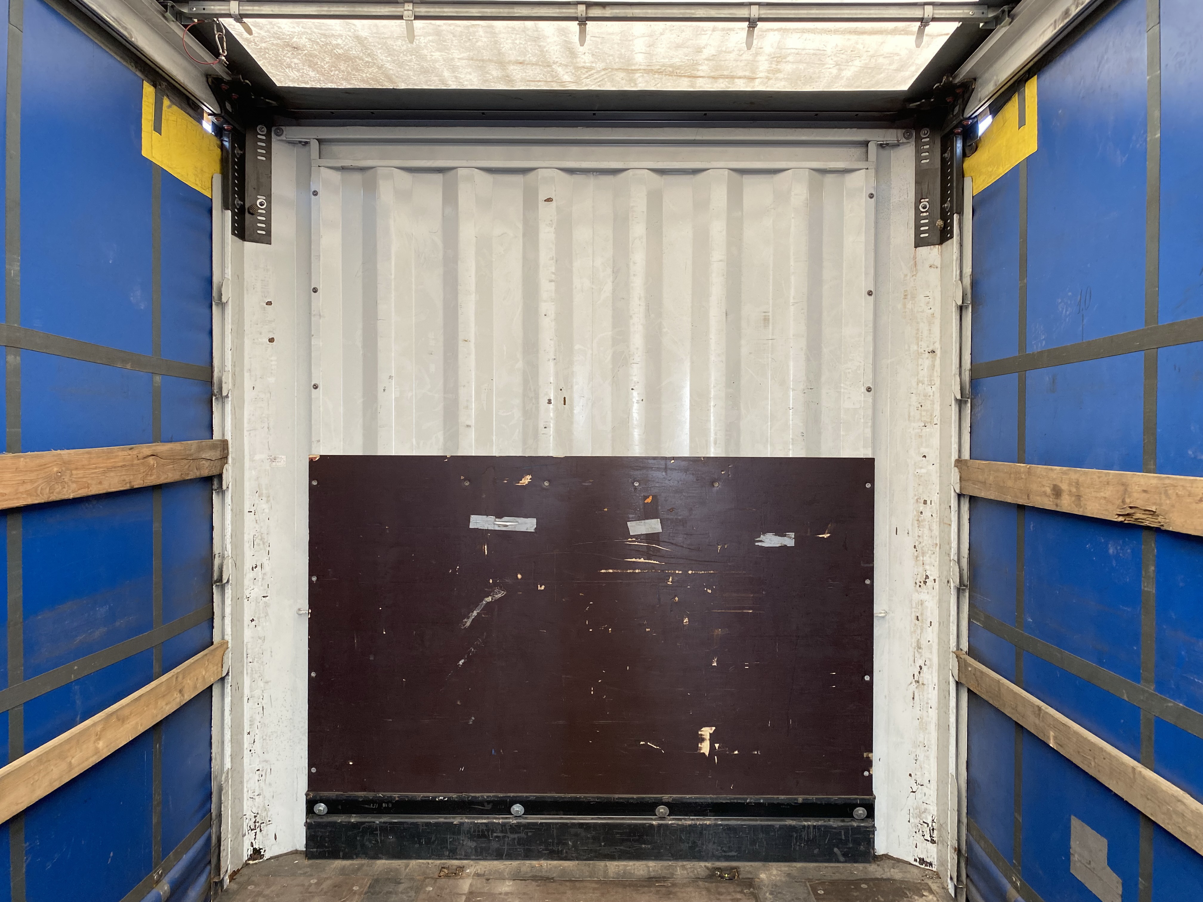 Equipment and accessoriesAluminium tilt boards ( 32 ) / Rear of trailer (Container doors) / Side protection / Document box / EBS / Ferry Lashing / Floor (Ply wood floor) / Customer logo / Stanchion pocket right / Stanchion pocket middle / Stanchion pocket left / Air connection (Red/Yellow Button) / Locking bars door (4) / Power connection (2 x 7 pin) / Spare wheel holder ( 1 ) / Side sliding curtain / Sliding roof / Access ladder / Wheel chock ( 1 ) / Customs cable / Tool box ( 1 ) / |
