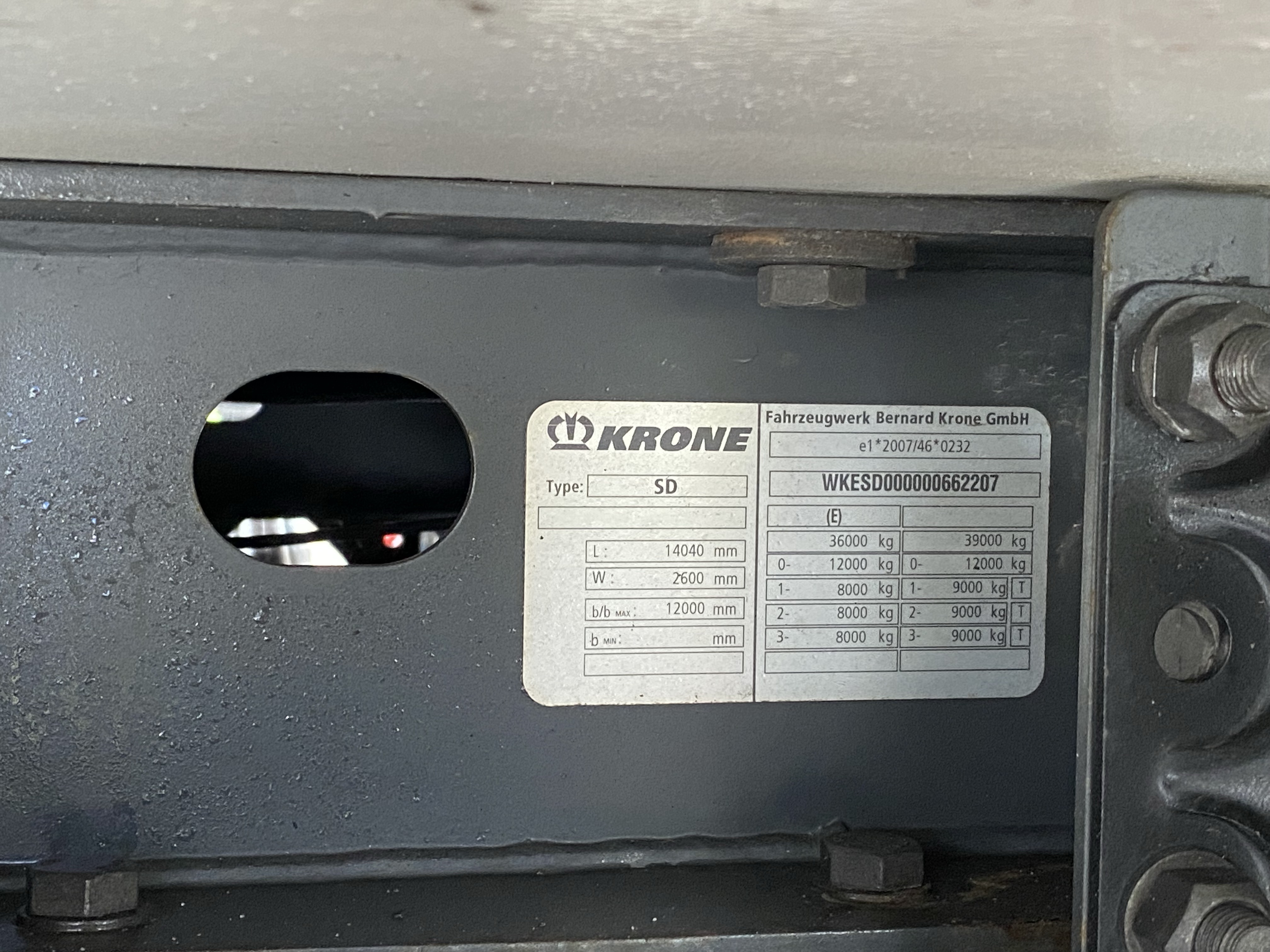 | Нагрузка на ось кг: | 9 000 |